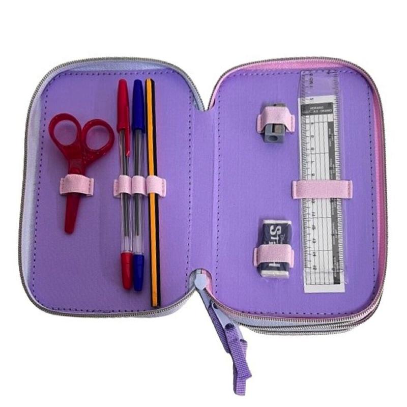 Dotato di 3 scomparti completi di tutto il materiale necessario per fare al meglio i tuoi lavori di scuola.