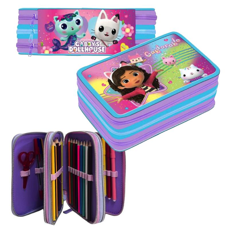 Astuccio Gabby’s dollhouse completo 3 zip scuola elementare pennarelli Giotto