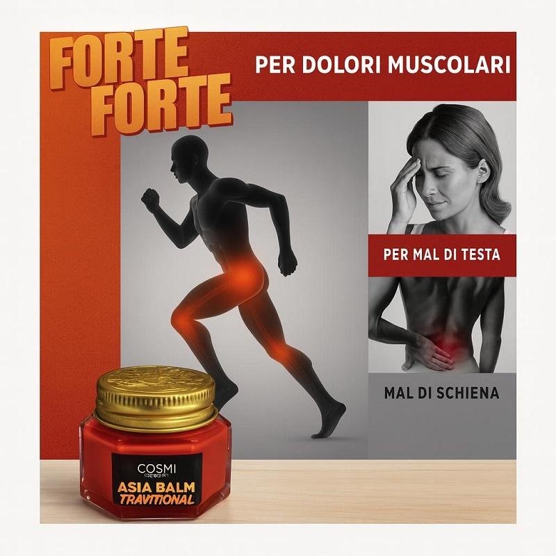 Il Balsamo Asia Traditional COSMI Premium è un unguento erboristico ispirato alla tradizione orientale, pensato per offrire una piacevole sensazione di sollievo e benessere nelle zone del corpo più affaticate. Una piccola quantità di prodotto è sufficiente per sprigionare un mix di aromi balsamici che avvolgono la pelle e i sensi, rendendolo un alleato ideale nei momenti di tensione quotidiana.
