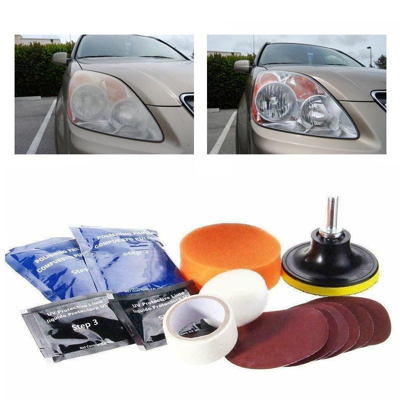 Il kit include tutti gli strumenti necessari per la cura dei fari fai-da-te.