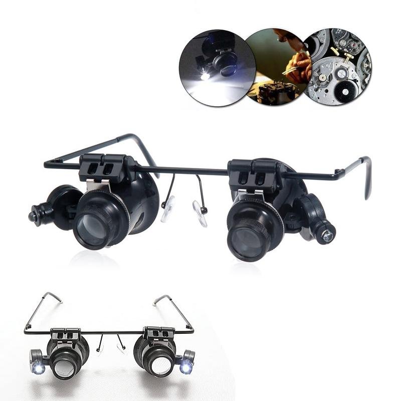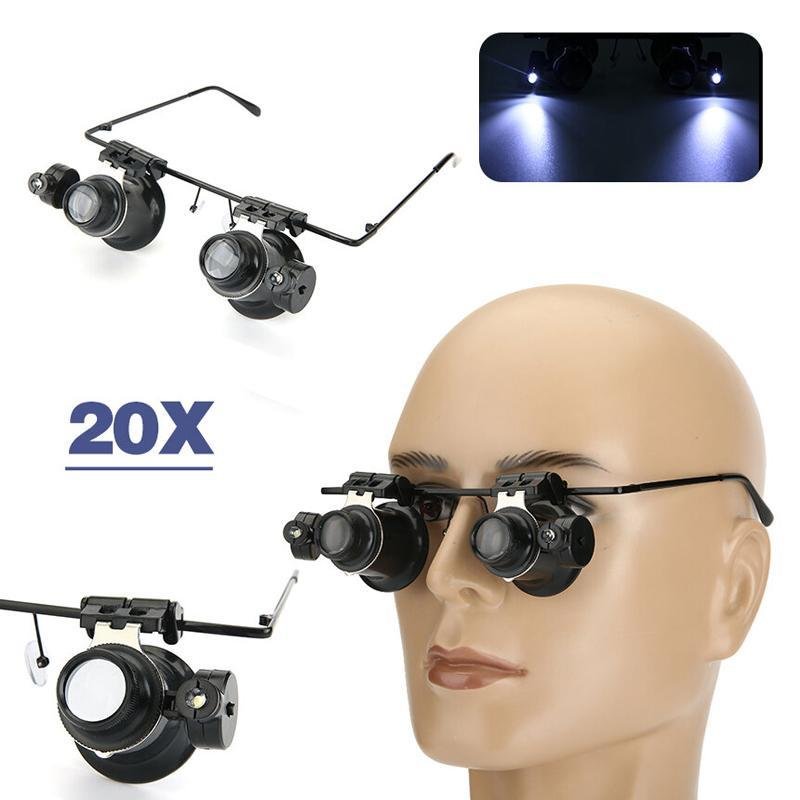 Ingrandimento fino a 20X. Possibilità di utilizzarli anche come monocolo. Angolo di inclinazione regolabile per una messa a fuoco ottimale, dotati di spot luminosi a LED attivabili mediante interruttore con LED ad alta luminosità e inoltre anch’essi inclinabile, alimentati da batterie a bottone CR1620 INCLUSE.