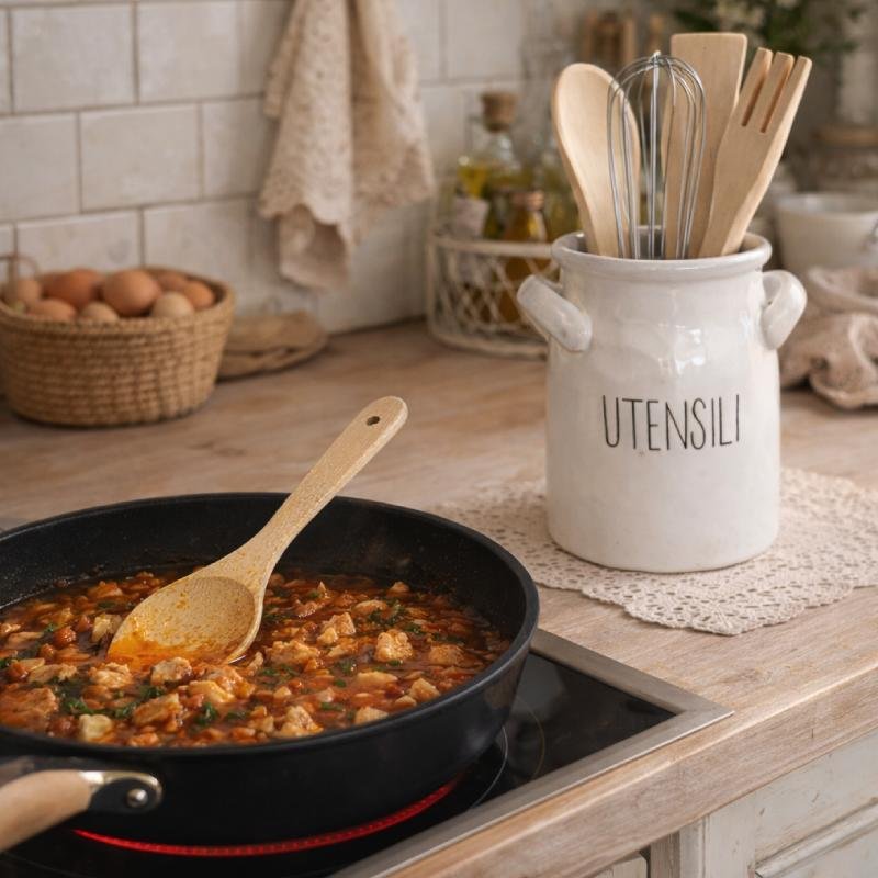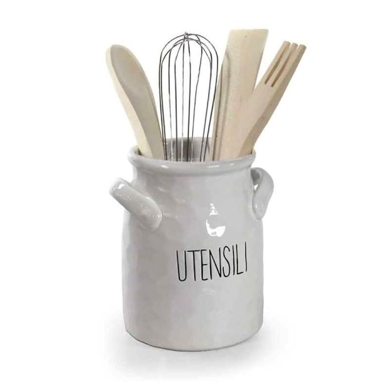 Un accessorio elegante e funzionale per organizzare i tuoi utensili da cucina. Realizzato in ceramica smaltata, è resistente e decorativo, perfetto da tenere sempre a portata di mano sul piano di lavoro.