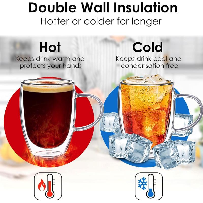 Scopri il set di 6 tazze da colazione in vetro borosilicato a doppia parete, la scelta perfetta per gustare le tue bevande mattutine con stile e funzionalità. Queste tazze sono realizzate in vetro borosilicato, noto per la sua resistenza e durevolezza, che le rende la scelta ideale per qualsiasi casa o bar.
