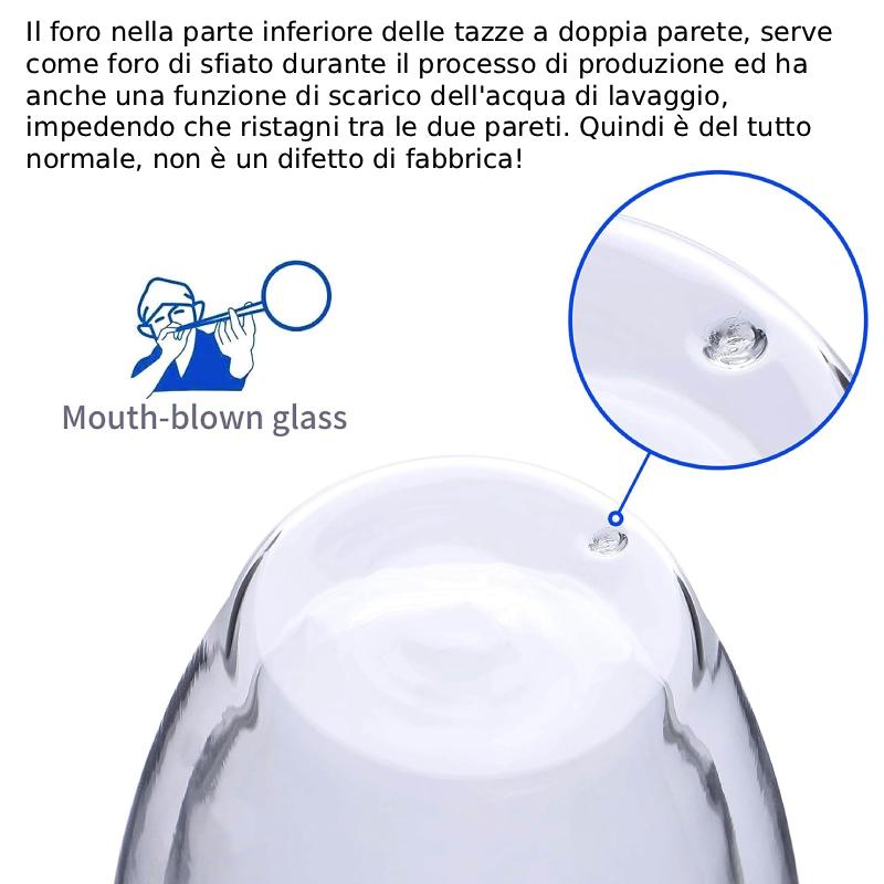 NB Il foro nella parte inferiore delle tazze a doppia parete, serve come foro di sfiato durante il processo di produzione ed ha anche una funzione di scarico dell’acqua di lavaggio, impedendo che ristagni tra le due pareti. Quindi è del tutto normale, non è un difetto di fabbrica!