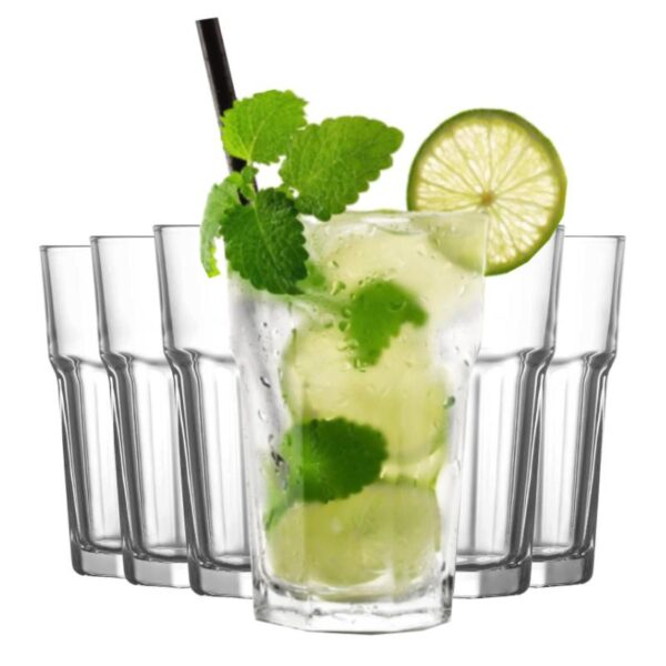Set 6 bicchieri in vetro long drink cocktail latte macchiato caffè acqua 365 ml
