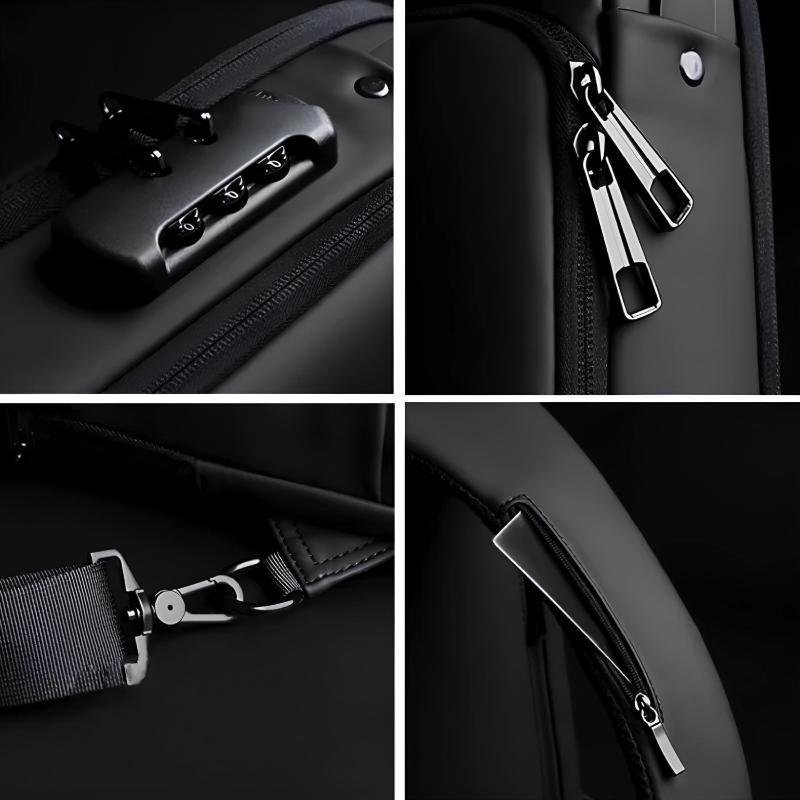 Sicura, compatta e curata nei dettagli: questa borsa monospalla antifurto si distingue per il lucchetto a combinazione integrato, il tessuto impermeabile e la pratica porta USB per ricaricare lo smartphone in movimento. Ideale per città, viaggio e tempo libero.